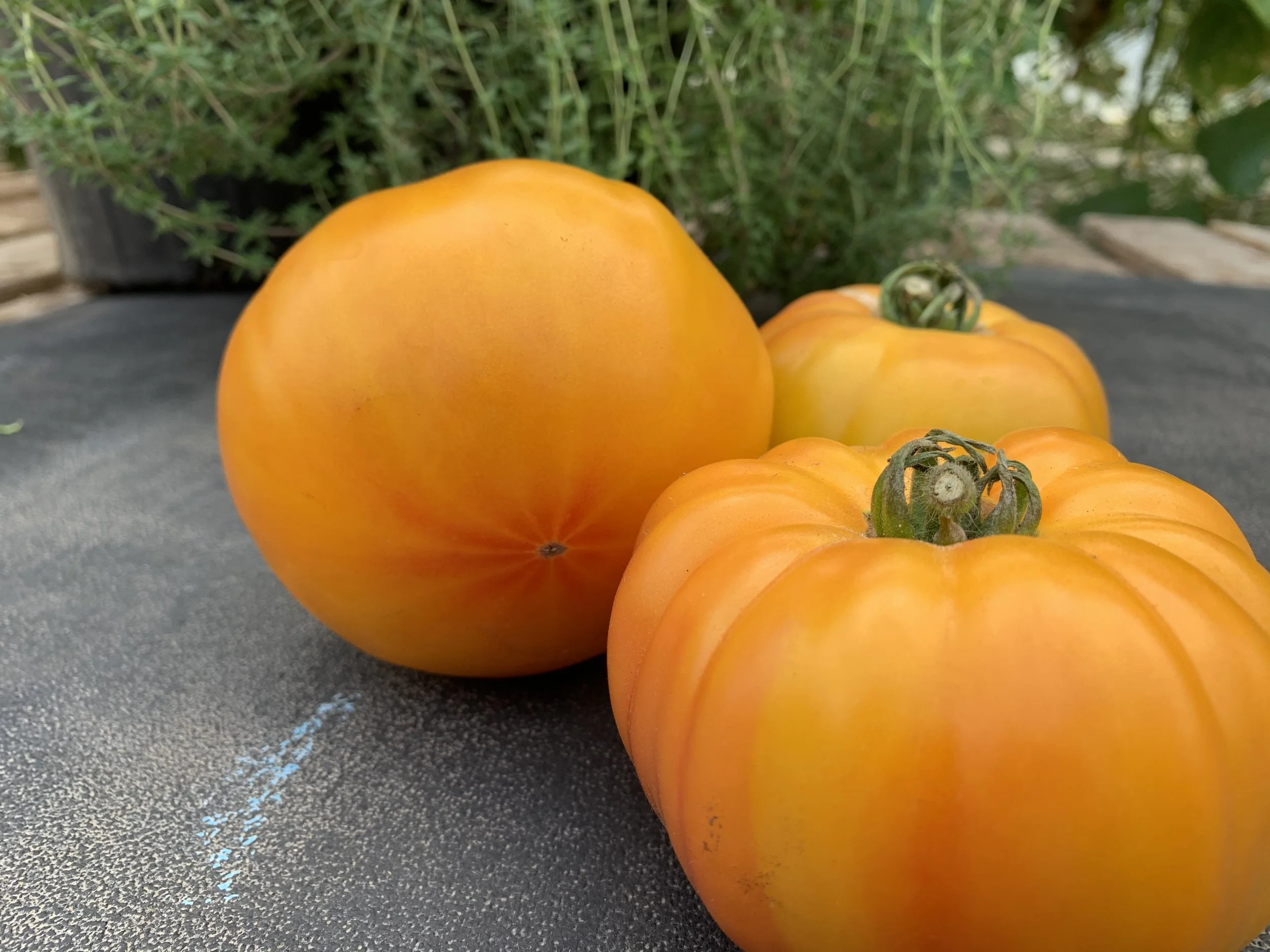 Ancestrale bicolore. Nommée ainsi en raison des belles rayures rouges qui décorent la peau jaune et la chair de cette tomate. Très peu de graines dans ses fruits charnus. Côtelée, texture fondante qui se démarque dans vos salades. Parfaite en sandwich.